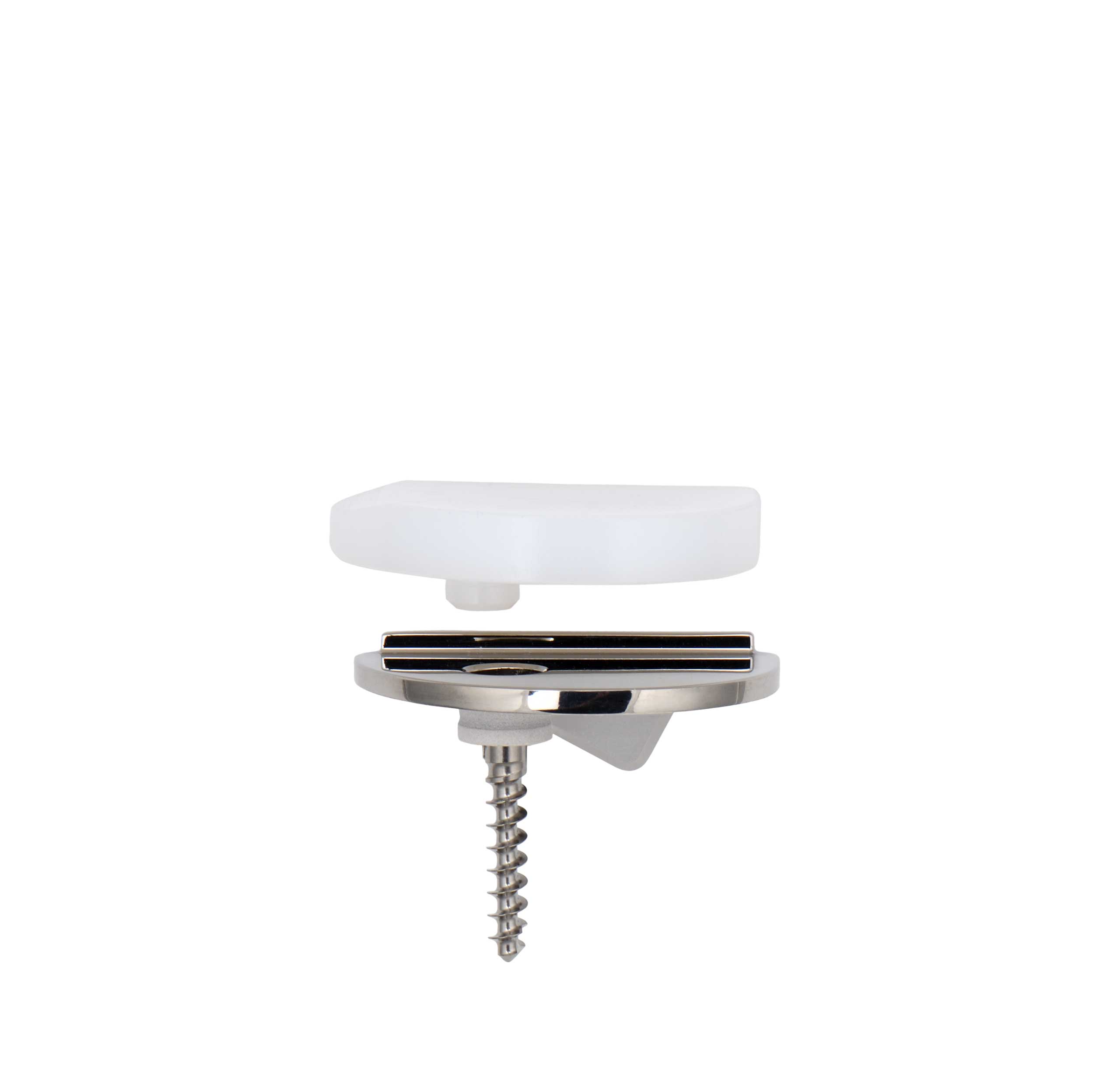 - Cementless tibial baseplate: Titanium (TA6V) with dual coating (Titanium spray T40 + HA).