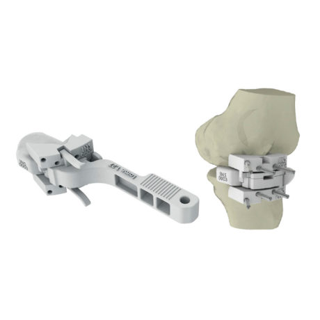 The technique of fitting with tailor-made instrumentation makes it possible to make the tibial cuts AND the distal femoral cut.