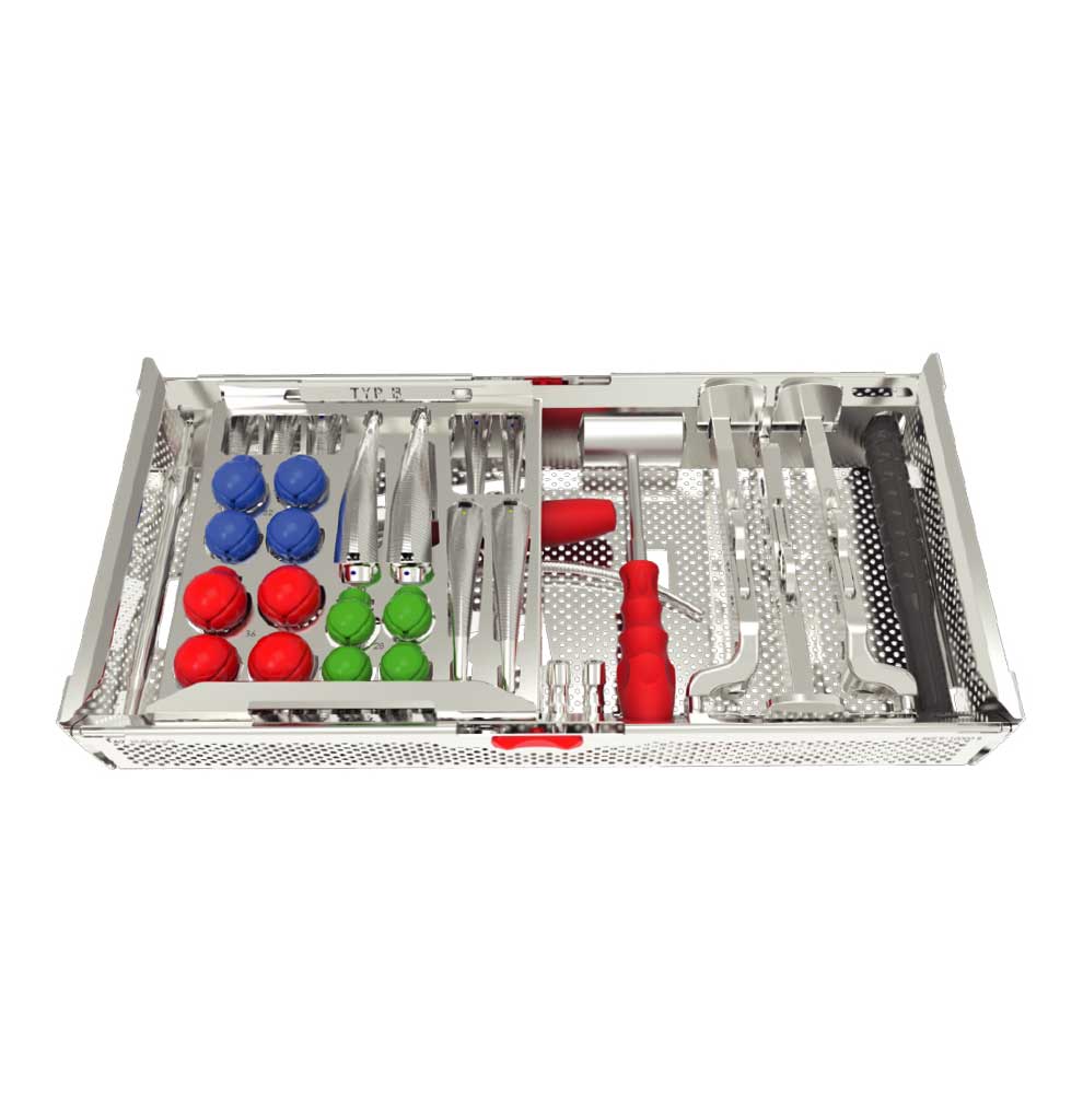 • Un large choix de manches porte râpe pour s’adapter à différentes voies d’abord : voie postérieure, postéro latérale, antérieure et antéro latérale.