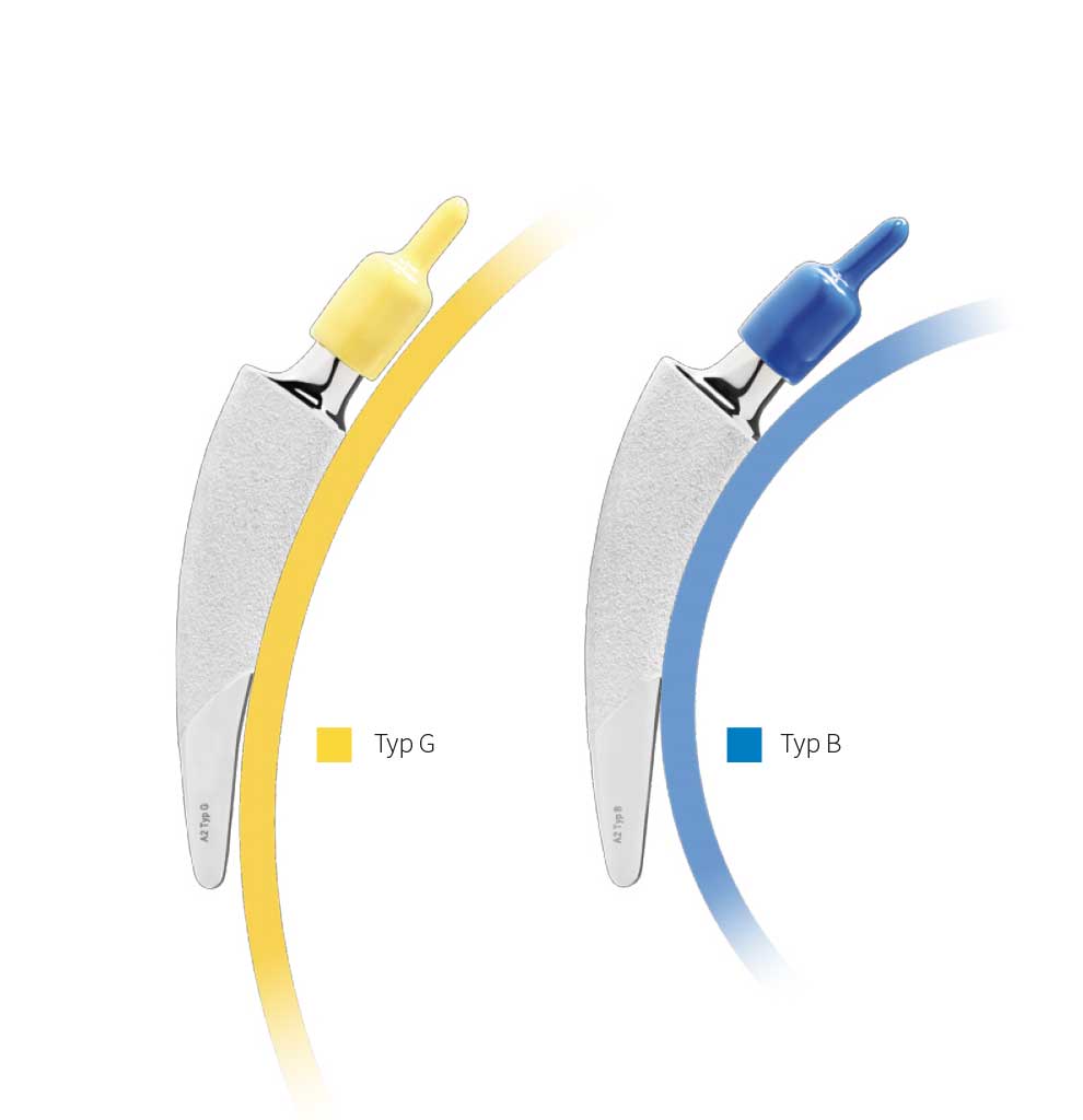 La gamme de tige A2® est une gamme de tige fémorale basée sur le concept « calcar-guided ».